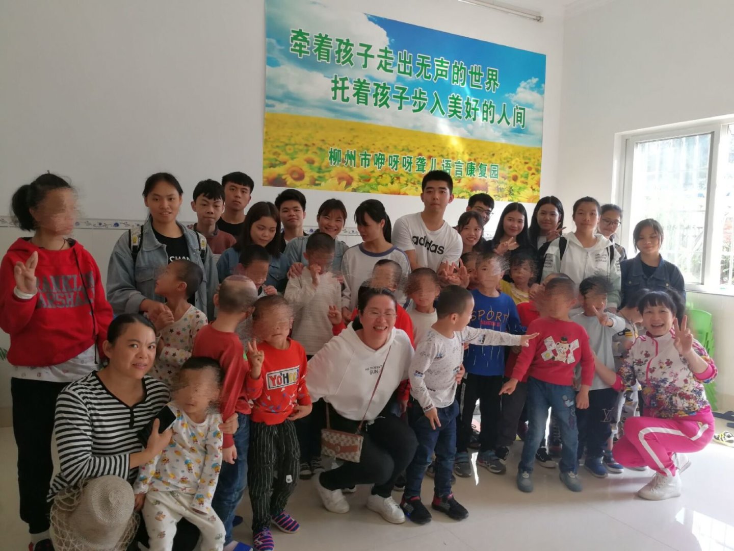 广西科技大学红十字协会于10月11-12号组织开展了“看望聋哑儿童”的活动。本次活动共27人参与,分为两批人员,分别在11号和12号进行。志愿者们带着爱出发,去聋哑学校进行探望。 志愿者与孩子们一起嬉戏,一起做小游戏,给孩子们讲故事,教他们写字,完全融入到孩子们中来,与他们一起度过欢乐的周末。