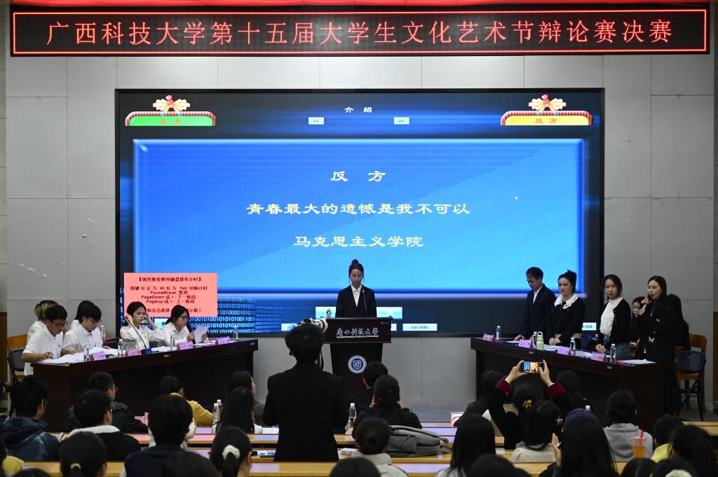 本届辩论赛由校团委主办,理学院团委、体育学院团委及辩论与口才协会联合承办。自10月启动,16支队伍历经多轮角逐,在近两个月的赛事中展现了出色的思辨力与表达力,也彰显了广西科大学子“敢为人先、百折不挠,务实创新、追求卓越”的精神风貌。