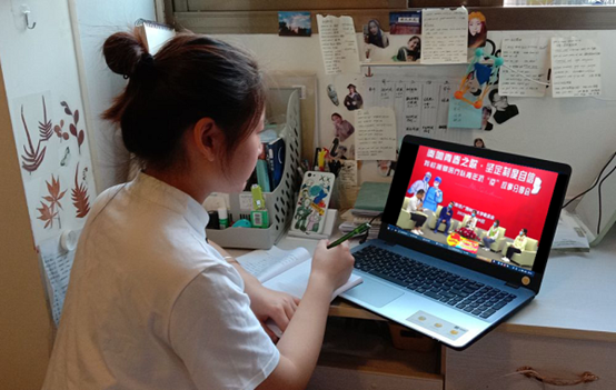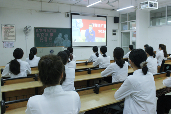 4月28日晚7:30,活动以访谈直播的形式,在图书馆报告厅顺利举行,我校第一附属医院呼吸内科医生乐文俊、重症医学科护士梁柳婷,第二附属医院心血管肾呼吸内科护士唐彬、神经消化内科护士管翠优受邀在线上与团员青年讲述了他们在抗疫过程中的感人故事。访谈中,他们对战“疫”成功的自信心、对超负荷工作的责任心、对身边人的感恩心,无不激励着屏幕前的团员青年。同学们均表示,一定会汲取榜样们的力量,积极向她们看齐,努力成长为一名“有理想、有本领、有担当”的社会主义建设者和接班人,不忘初心,砥砺前行,为实现中华民族伟大复兴的中国梦奉献青春的智慧和力量!全校15000余名团员青年线上参与了本次活动,共收到互动留言2500余条。