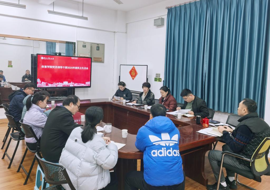1月20日上午,体育学院党员领导干部2025年度民主生活会在第四教学楼4D102室召开。学校党委组织部副部长段修云到会指导,学院处级党员领导干部参会,非处级领导干部的党委委员、党支部书记及高级职称教师代表列席会议。会议由学院党委书记宋海霞主持。