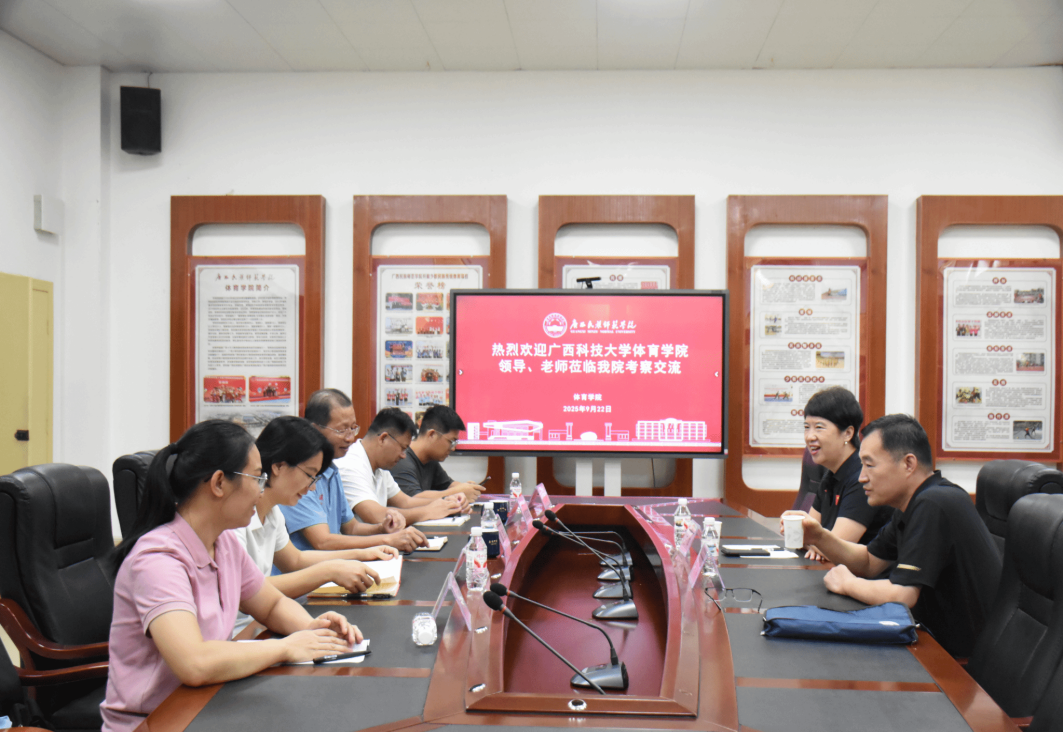 为深化高校体育学科交流合作,互鉴办学经验、共促发展,9月22日 ,体育学院党委副书记、院长王萍,研究生秘书李锋一行赴广西民族师范学院体育学院开展交流学习活动。广西民族师范学院体育学院院长蒙军、副院长张兆龙、副院长陈钦英及相关职能部门负责人出席了交流座谈会。