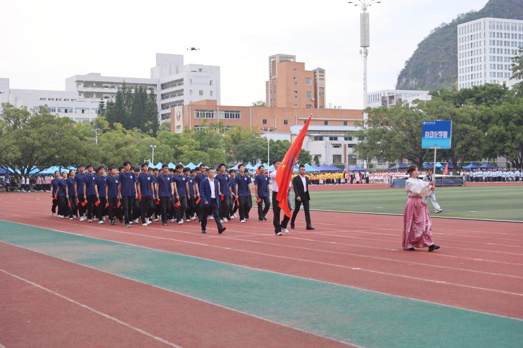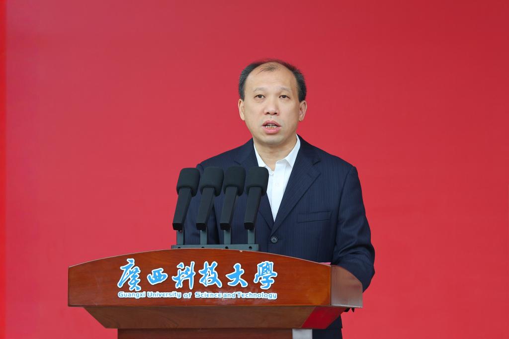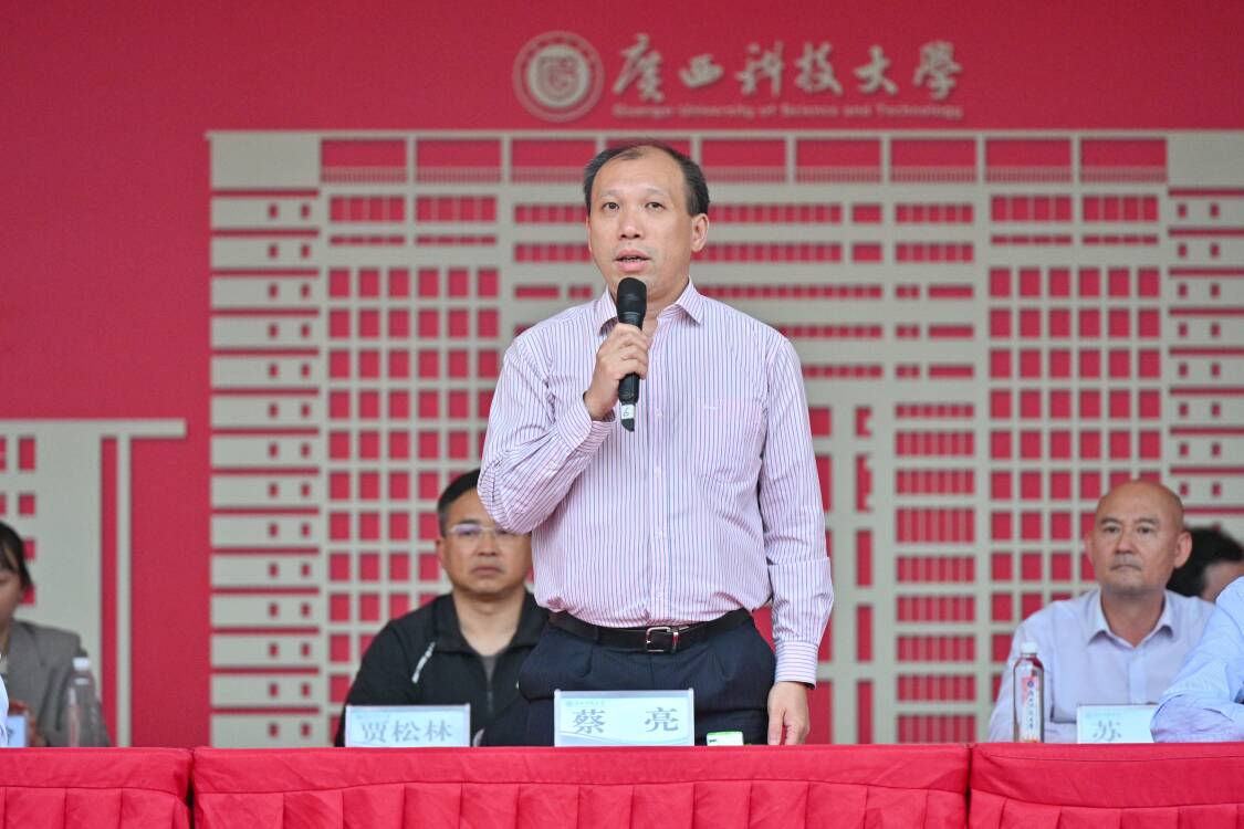 学校党委常委、副校长,学校体育运动委员会主任蔡亮代表学校党委、行政向本届田径运动会的召开表示热烈的祝贺,向为筹备工作付出辛勤努力的全体工作人员、裁判员、志愿者以及积极参与的师生校友,致以诚挚问候和衷心感谢。他表示,学校始终坚持“健康第一”教育理念,构建“大体育”工作格局,体育工作不断取得新突破、新成效。本届田径运动会既是一场体育竞技的盛会,更是一堂生动的“体育思政”实践课。希望全体运动员弘扬中华体育精神和奥林匹克精神,赛出风格、赛出水平、赛出友谊;全体裁判员和工作人员恪守职责、公正执裁,确保赛事顺利进行;广大师生文明观赛、热情助威,自觉维护赛场秩序。希望能以本届田径运动会为契机,引导师生走出宿舍、走向操场、走进阳光,在运动中强健体魄、锤炼意志、凝聚合力,大力弘扬“敢为人先、百折不挠,务实创新、追求卓越”的广西科大精神,把体育精神转化为推动学校高质量发展的强大动力。