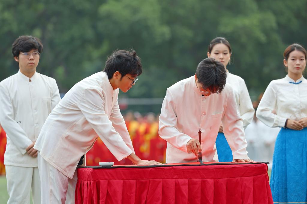 体育学院学生徐一帆、土木建筑工程学院学生甘雨菲分别代表裁判员、运动员在开幕式上宣誓。