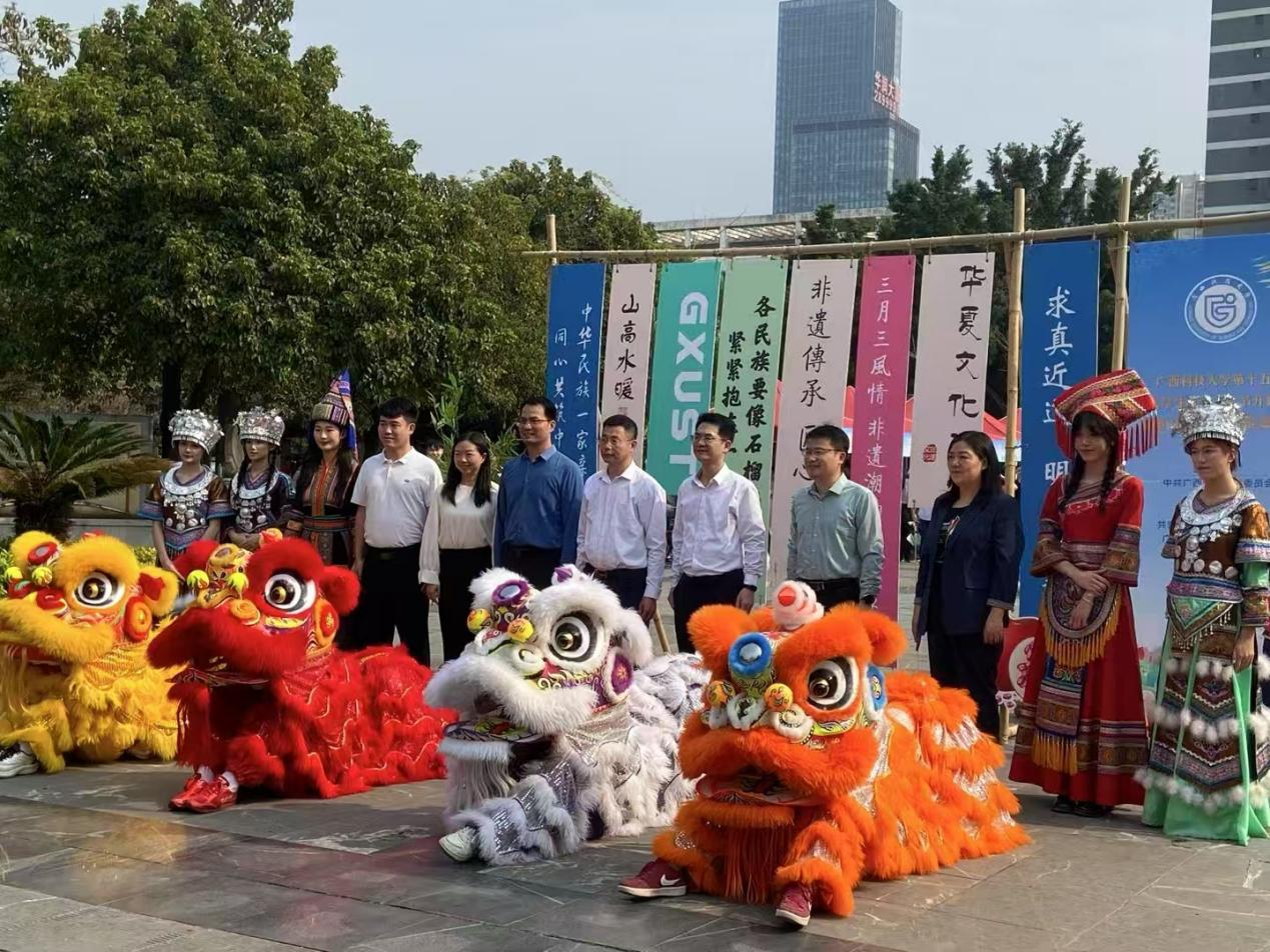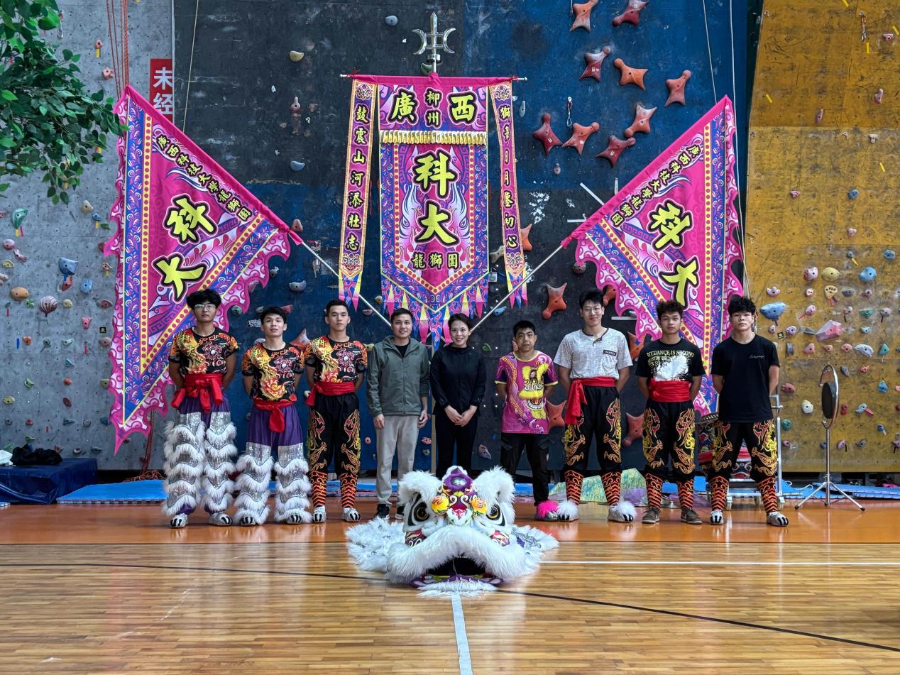 广西科技大学舞狮队于2024年9月正式成立,队员主要由社会体育专业的10名学生以及公共体育专业的5名学生组成,体育学院专任教师周鸣出任该队教练员。舞狮队以传统非物质文化遗产为依托,积极参与校园文化建设、地方艺术基金项目以及体育学科竞赛等活动,不仅丰富了大学生的课余文化生活,更在传承中华优秀传统文化中迈出了坚实的一步,成为校园里一道引人注目的风景。