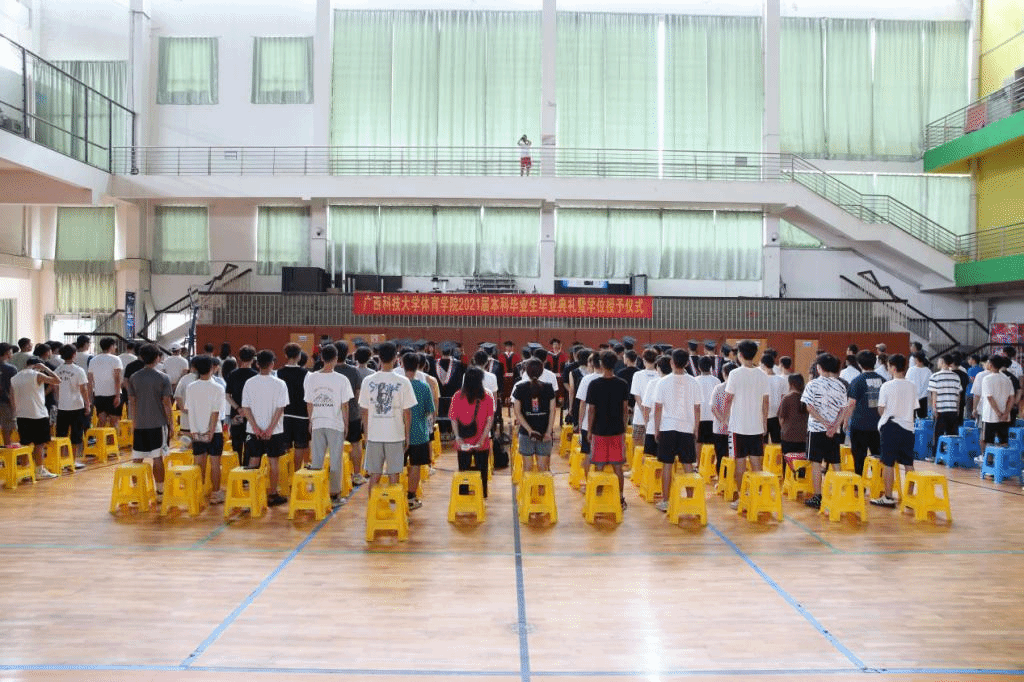 6月24日下午,体育学院2021届学生毕业典礼暨学位授予仪式在东环校区体育馆一楼4号篮球场举行。体育学院领导班子、教师代表,2021届返校毕业生及部分在校生出席典礼。典礼由体育学院党委副书记、纪委书记彭发胜主持。