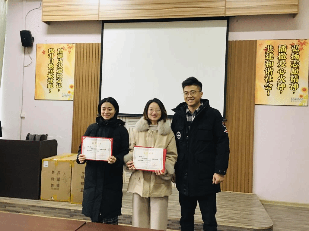 学院副院长黄海、王萍分别给获得三等奖的教师颁奖