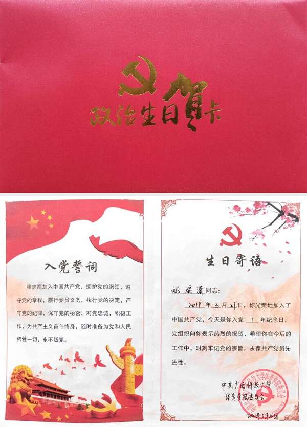 最后,全体党员重温入党誓词,引导毕业生党员“不忘初心、牢记使命”,走出校门后要更加严格要求自己,严守规矩,树立崇高道德追求。与此同时,学院为毕业生党员准备了政治生日贺卡,通过庄重的仪式感提醒广大党员要始终保持组织归属感和身份荣誉感。毕业生主题教育系列活动,有助于强化毕业生党员的理想信念教育和党性观念教育。