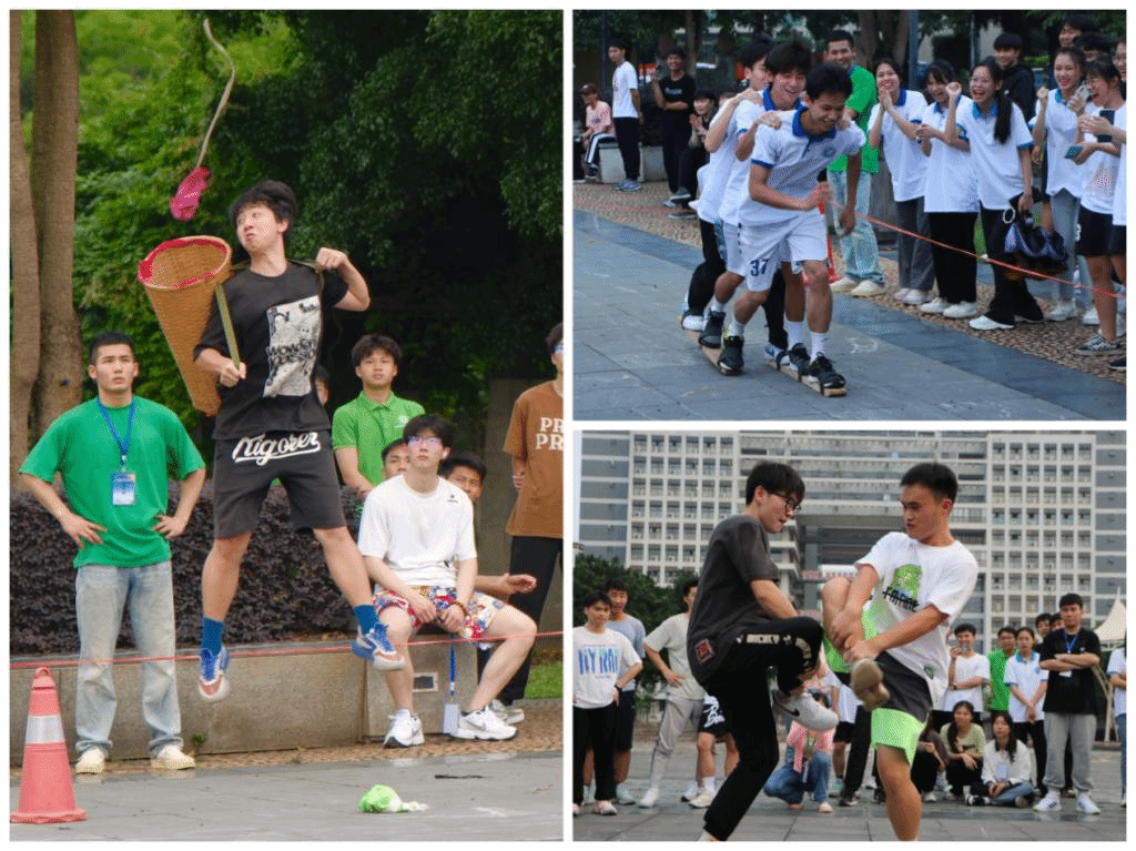 开幕式后举行的“广西三月三 科大青年在八桂”民俗体育运动会包括了板鞋竞速、抛绣球、金鸡独立和“少数民族知多少”等项目。体育学院和启迪学院并列获得冠军,电子学院获得季军。