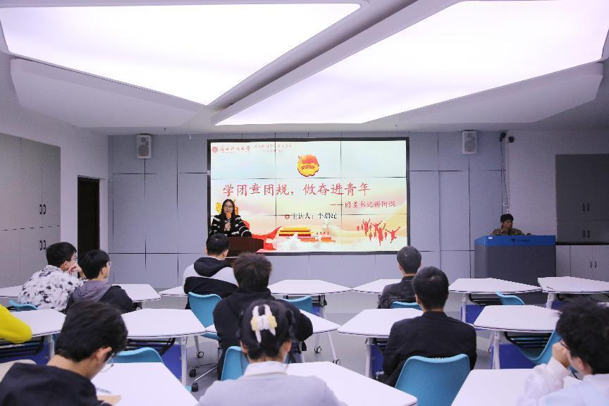 为深入学习贯彻习近平新时代中国特色社会主义思想和党的二十大精神,落实团十九大工作部署,增进团员青年对新修订《中国共产主义青年团章程》的理解,着力锻造对党忠诚、勇于担当、作风过硬的马克思主义青年团干。12月7日,计算机学院(软件学院)团委在科教楼北208会议室开展“团委书记讲团课”活动。本次团课由学院学工办主任、团委书记李瑞妮主讲,学院各班级团支部书记、副书记到场聆听。
