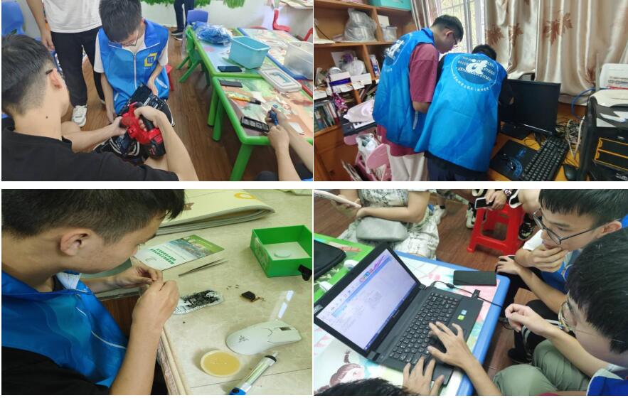 IT服务队员们进行电脑清灰保养、电脑系统重装及数据备份等服务