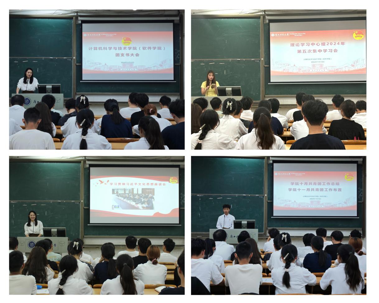 11月12日,计算机学院(软件学院)在文昌校区第四教学楼4C102教室召开11月团支书大会。会上,学院团委理论学习中心组集中学习了习近平文化思想,传达了学校共青团11月工作会议精神,对各团支部上一阶段的工作情况进行了通报,并对下一阶段的工作进行了具体布置。学院各团支部书记、学院团委全体学生骨干参加会议,会议由学院学工办主任、团委书记李瑞妮主持。