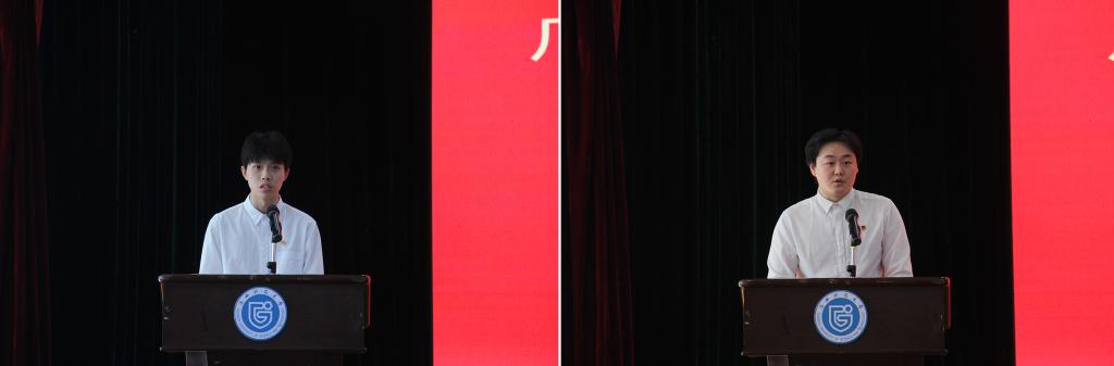 聘书颁发环节,各学生组织指导老师为新一届学生组织骨干代表逐一颁发了聘书,为他们佩戴工作牌,这不仅标志着他们正式承担起了学生骨干的职责,也象征着新的责任与使命的开始。新一届学生组织负责人代表依次上台发言,表达了他们对未来工作的憧憬和决心。