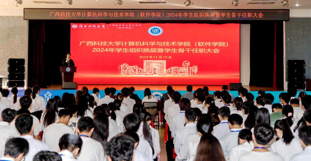 11月19日下午,计算机学院(软件学院)在文昌校区大学生活动中心顺利召开学生组织换届暨学生骨干任职大会,学院党委副书记、纪委书记易敏,学院学工办主任、团委书记李瑞妮,学院专职辅导员等出席本次大会,学院各学生组织骨干代表共200余人到场参加。大会由学院学生会主席王泽仁主持。