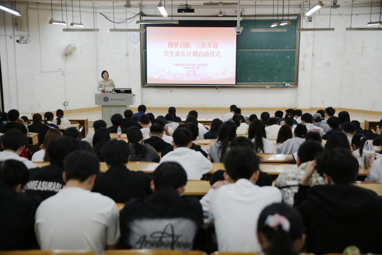 3月17日下午,计算机学院(软件学院)在文昌校区四阶一教室举行“圆梦启航·三扶并进”学生成长计划启动仪式。计算机学院(软件学院)党委副书记、纪委书记易敏,辅导员代表及全体家庭经济困难学生参加仪式。