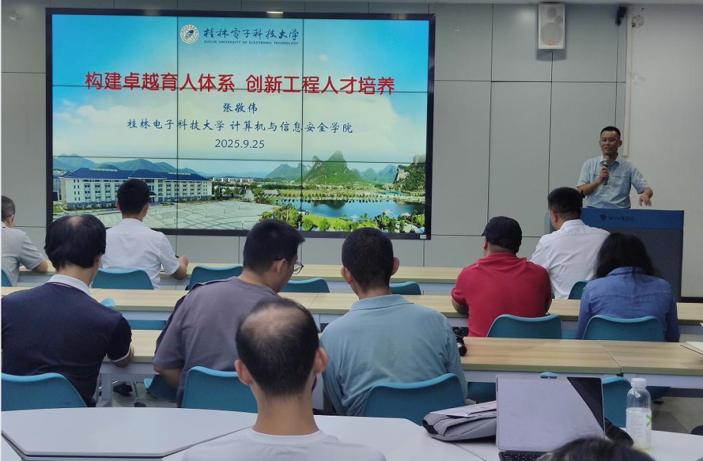 9月25日下午,桂林电子科技大学计算机与信息安全学院张敬伟教授应邀到我院开展题为《构建卓越育人体系 创新工程人才培养》的专题讲座,学院全体教师到场聆听。