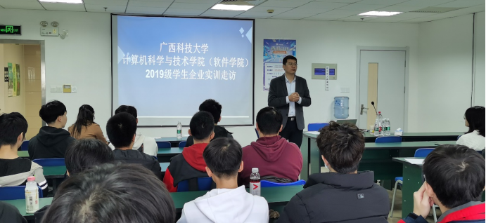黄剑华一行六人来到长沙飞思校企合作实训基地,看望了正在基地实训的软件工程专业2019级的学生。孙自广向同学们介绍了学院专业调整情况,勉励同学们努力学习,认真完成实训任务,同时叮嘱同学们做好疫情防护,注意人身和财产安全。在训学生分为游戏开发、动画设计和Java全栈开发三个实训方向。走访过程中,老师们分别与不同实训方向的学生进行座谈,了解实训情况,帮助学生解决实训中碰到的问题,并提出要求和期望。会后,黄剑华一行与基地负责人探讨了校企合作现状和今后深入合作的计划。