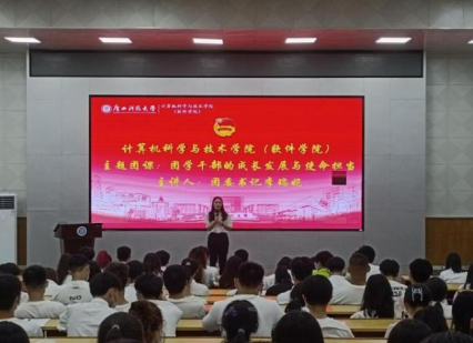 为深入学习宣传贯彻党的二十大精神,勉励广大青年学子坚定不移听党话、跟党走,凝聚青年力量,激发广大青年的学习热情、创造活力与创新意识,10月底以来,计算机学院(软件学院)团委开展了一系列主题团课活动。主题团课由学院学工办主任、团委书记李瑞妮主讲,学院各班级团支部书记、副书记以及学生组织负责人等共计140余名团学干部参加学习。