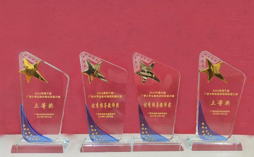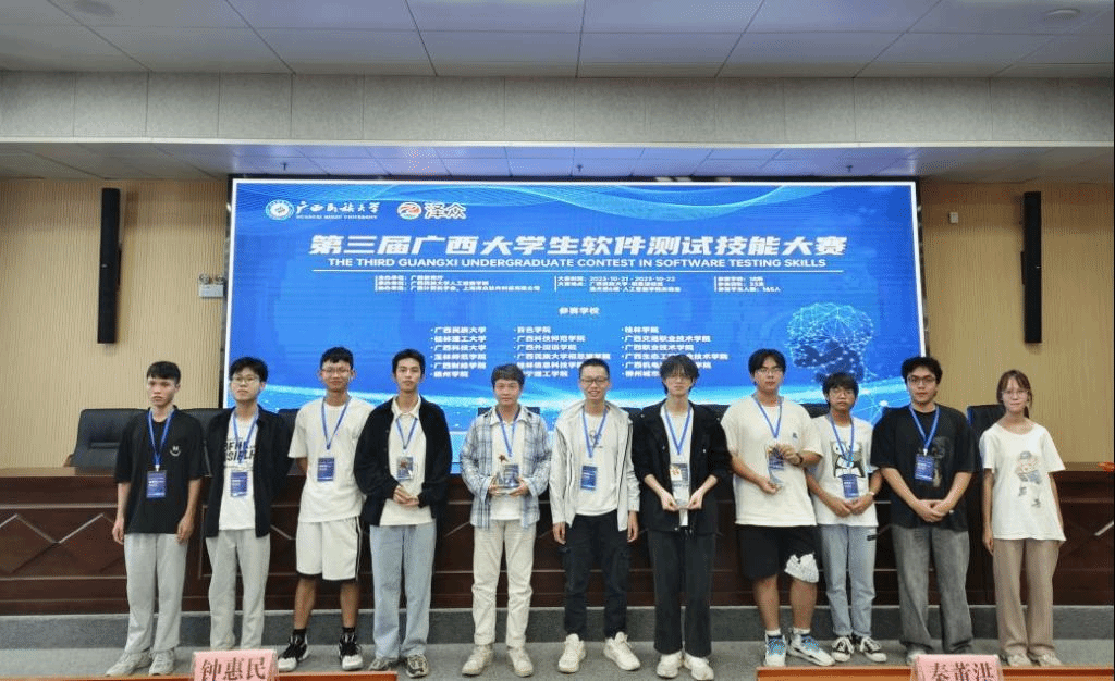 此次大赛围绕指定的被测系统进行三场测试,主要考察学生在软件管理测试、功能测试和性能测试三个方面的问题解决能力和创新能力。经过两天的激烈角逐,邓钧忆和李威龙老师指导的2021级软件工程专业学生莫兴鹏、罗道杰、黄艺森、韦喜敏、邱靖岚参赛小组,以及2022级软件工程专业学生陆贤涛、杨阳、2022级物联专业学生杨柳行、周洪远、2020级软件工程专业学生陆昭参赛小组,荣获“第三届广西大学生软件测试技能大赛”总决赛三等奖2项,优秀指导教师奖2项。