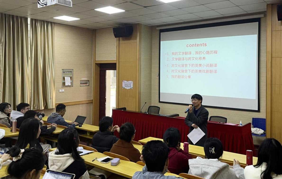 韦少华认为,英美文学是西方文化的重要载体,它包含着西方国家的发展历史与风俗习惯,是中西文化交流的重要媒介。英美文学作品不仅能丰富我们的文化生活,让我们对西方国家的文化有更进一步的了解,同时也有利于促进我国文学体系与英美文化体系的互鉴交融。英美文学翻译不仅仅是一项语言活动,更是一种文化的交流与互动。此外,他还详细介绍了英美小说、戏剧的翻译方法与原则,为同学们未来在文学翻译方向的学习和研究打下了良好的基础。