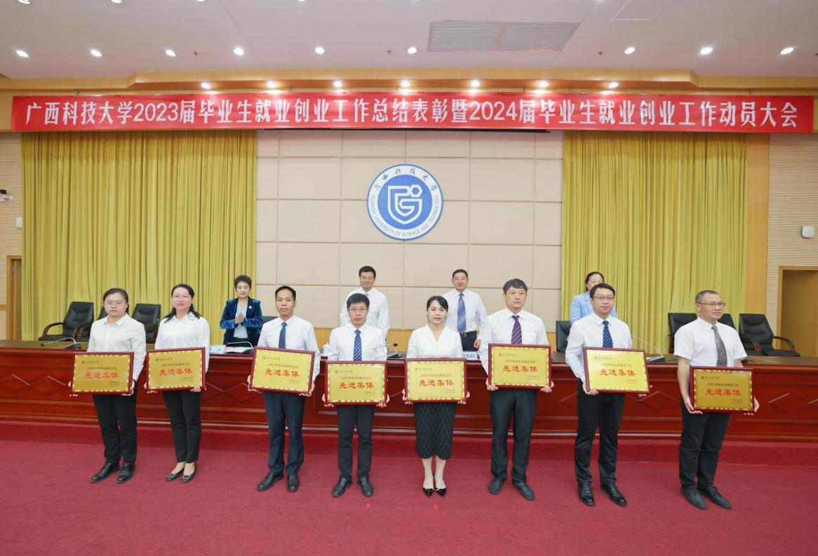 图为学院荣获“广西科技大学2023年就业工作先进集体”荣誉牌匾