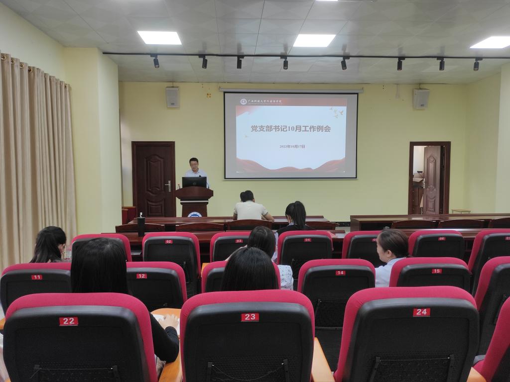 10月16日,外国语学院在文昌校区基础实验楼106教室召开10月份党支部书记工作例会,学院党委书记陈志波主持会议并讲话。