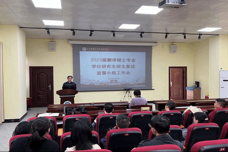 学院研究生招生复试工作监督小组负责全程监督学院复试工作。复试开始前,小组召开工作会,组织全体人员学习相关保密条例,向参与复试的工作人员强调复试工作纪律和保密要求,与全体人员签订了《广西科技大学外国语学院复试工作保密协议》,确保研究生招生录取工作公平、公正、公开。