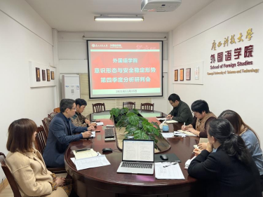 11月15日下午,外国语学院党总支在学院会议室召开2021年第四季度意识形态和安全稳定形势分析研判会。学院党政领导班子成员出席会议,办公室主任、团委书记、辅导员列席会议。会议由学院党总支书记陈志波主持。