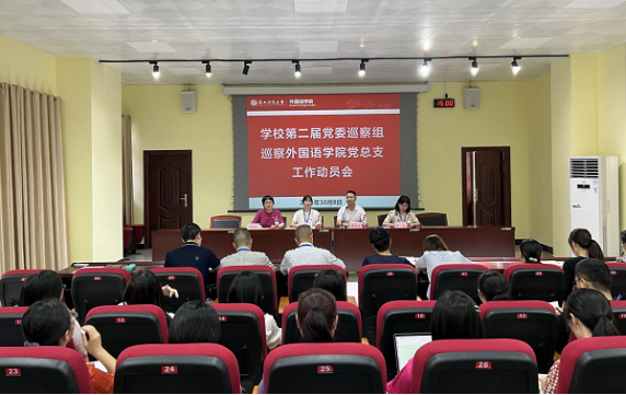 根据学校党委巡察工作部署,10月8日下午,学校第二届党委巡察组巡察外国语学院党总支工作动员会在东环校区基础实验楼106召开。外国语学院教职员工和学生党员代表参加会议,会议由外国语学院党总支书记陈志波主持。