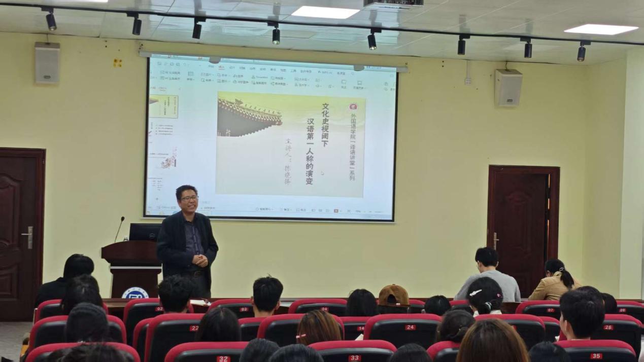 为进一步提升师生学术素养,2025年10月28日,广西科技大学外国语学院“译语讲堂”系列学术讲座在东环校区基础实验楼106教室举办“文化史视阈下汉语第一人称的演变”专题讲座。本次讲座由陈晓锋博士主讲,金钱伟副院长主持讲座,吸引了学院众多师生参与,为大家呈现了一场汉语人文与历史交融的学术盛宴。