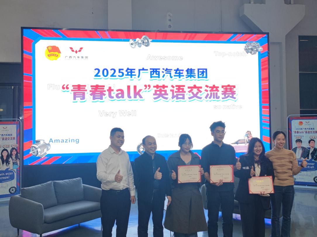 11月17日晚,五菱工匠学院内灯火通明,一场别开生面的英语交流赛 ——“青春talk”在此上演。此次活动由广西汽车集团主办,并特邀外国语学院学子们深度参与,共同打造了一场融专业性、实践性与跨文化交际于一体的英语能力盛会。广西汽车集团党工部部长、宣传部部长卓家群,规划运营总监田留胜,外国语学院党委书记李辉、团委书记吕舒颖,学校外教Omer等领导嘉宾共同出席活动,广西汽车集团参赛选手及学院40多名英语专业学生参加活动。