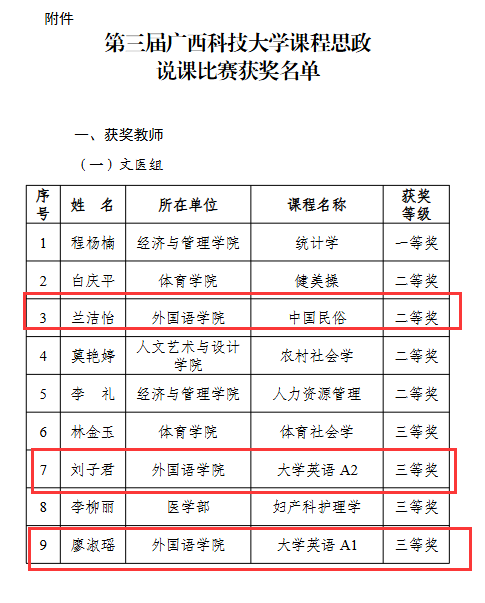 12月9日,广西科技大学第三届课程思政说课比赛决赛在文昌校区顺利举办,外国语学院教师在赛事中表现优异,多位教师斩获个人奖项,学院同时获评优秀组织奖,实现教学成果与组织工作双突破。