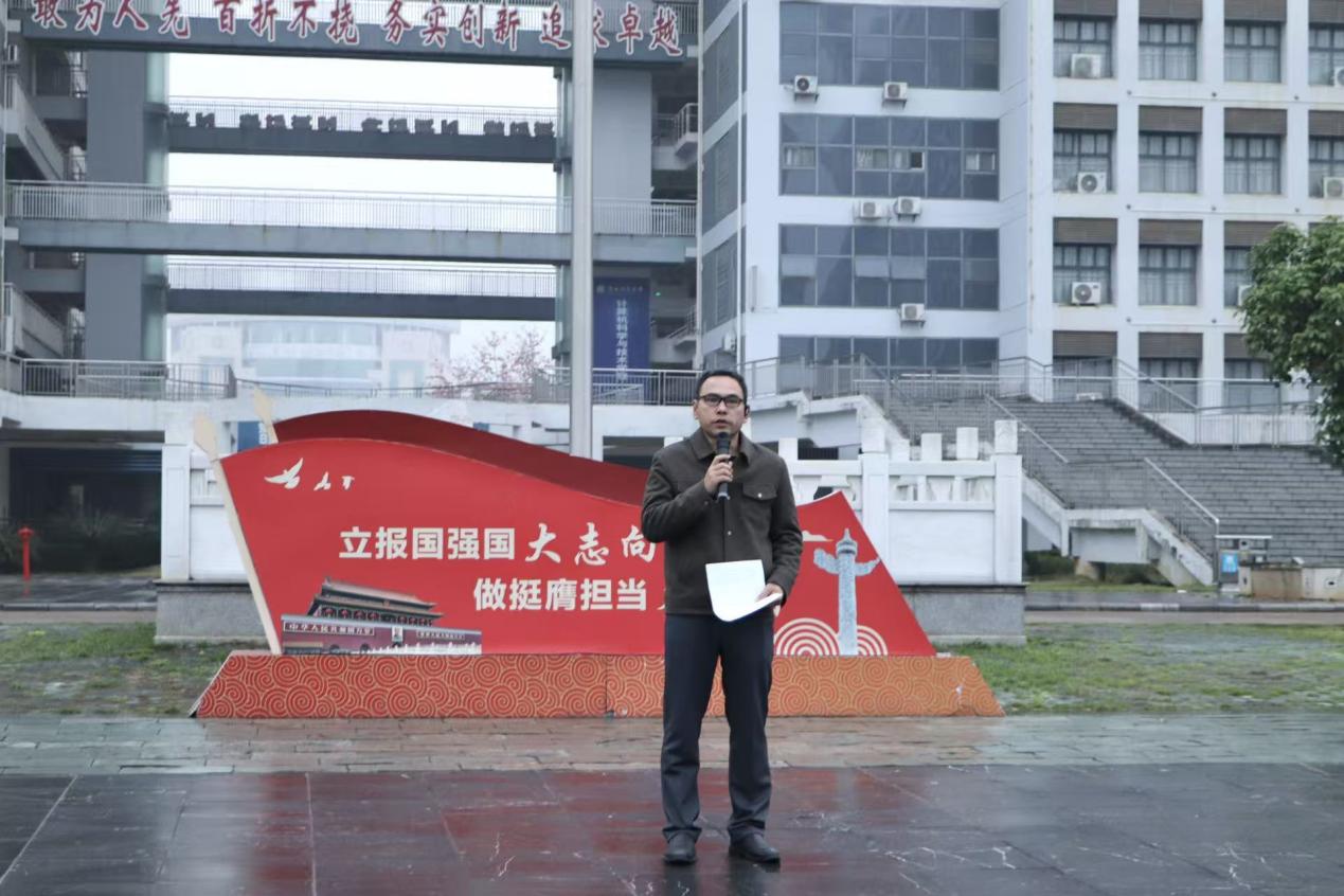 学院党委副书记黄大志在国旗下讲话。他结合全国两会精神指出,青年学子应将专业学习与国家发展、对外开放大局紧密结合,立足东盟、扎根柳州,锤炼过硬本领,勇担时代使命,以实际行动践行爱国情怀,在服务社会与开放合作中展现青年担当。