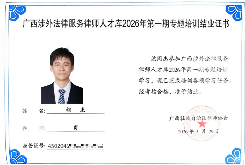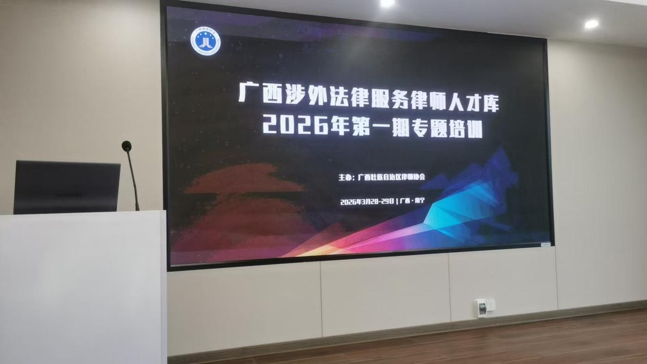 为深化区域国别研究、提升涉外法治实践能力,我院教师代表胡杰博士于2026年3月28-29 日,参加广西涉外法律服务律师人才库 2026 年第一期专题培训。