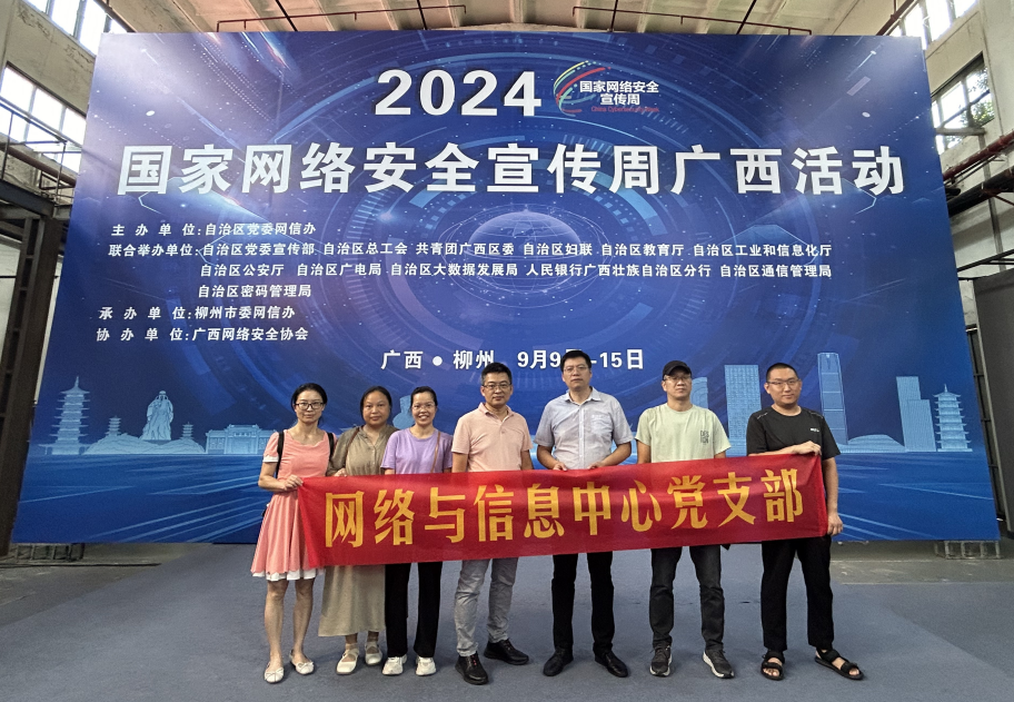 9月中旬,2024年国家网络安全宣传周广西网络安全主题展在柳州市工业博物馆开展。9月15日网络与信息中心党支部组织参加了此次活动。
