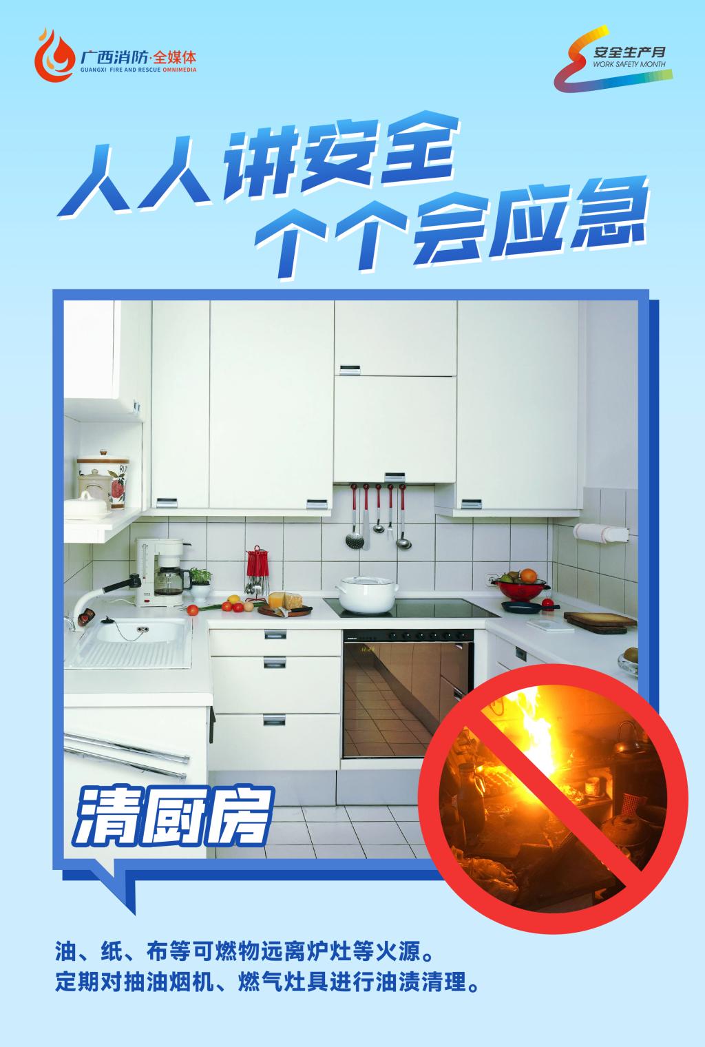 今年6月是第22个全国安全生产月主题是“人人讲安全、个个会应急”广西消防提醒您:家庭防火要牢记“三清三关”为了您和家人的生命财产安全赶快自查自纠将家中的隐患清除