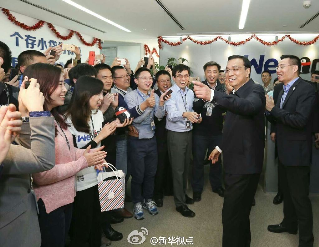 新华网北京1月4日电 据新华社“新华视点”微博报道,李克强总理4日在深圳考察。总理见证首家互联网银行第一笔贷款