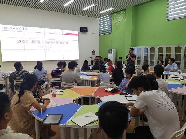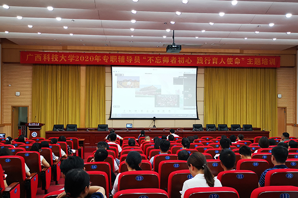为深入贯彻落实全国高校思想政治工作会议和全国教育大会精神,加强我校辅导员队伍建设,提高大学生思想政治教育工作水平,9月1—7日,我校开展2020年专职辅导员“不忘师者初心 践行育人使命”主题培训。本次培训内容丰富、形式多样,理论与实践紧密结合,内容包括《习近平总书记教育重要论述讲义》《习近平谈治国理政》第三卷等理论学习;聆听“时代楷模”曲建武教授“不忘初心,铸魂育人”专题报告、观看“忠诚担当,大爱无疆”援湖北抗疫医疗队先进事迹视频;举办“学生事务管理”沙龙以及组织辅导员到融安县潭头乡新桂村开展辅导员助力脱贫攻坚调研。