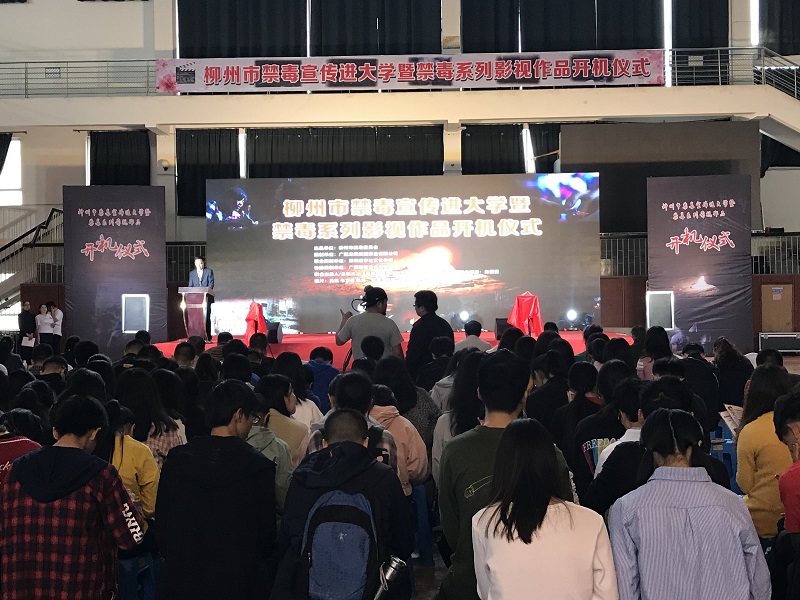 4月11日下午,柳州市禁毒宣传进大学暨禁毒系列影视作品开机仪式在我校东环校区体育馆举行。校党委常委、副校长徐武彬,柳州市委政法委副书记、禁毒委副主任欧顺红,禁毒委办公室主任黄柳武等柳州市有关领导以及我校300多名师生代表参加活动。