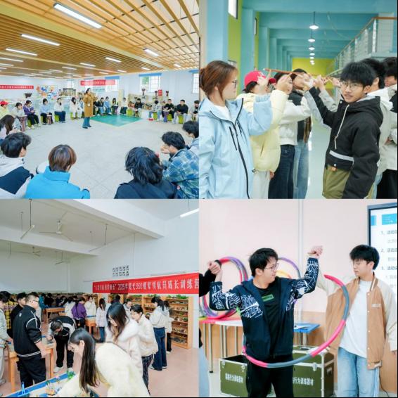 心理团辅实践中,心理委员们分别通过参与鼓圈、心理沙盘、团体素拓等活动,提升实操能力。