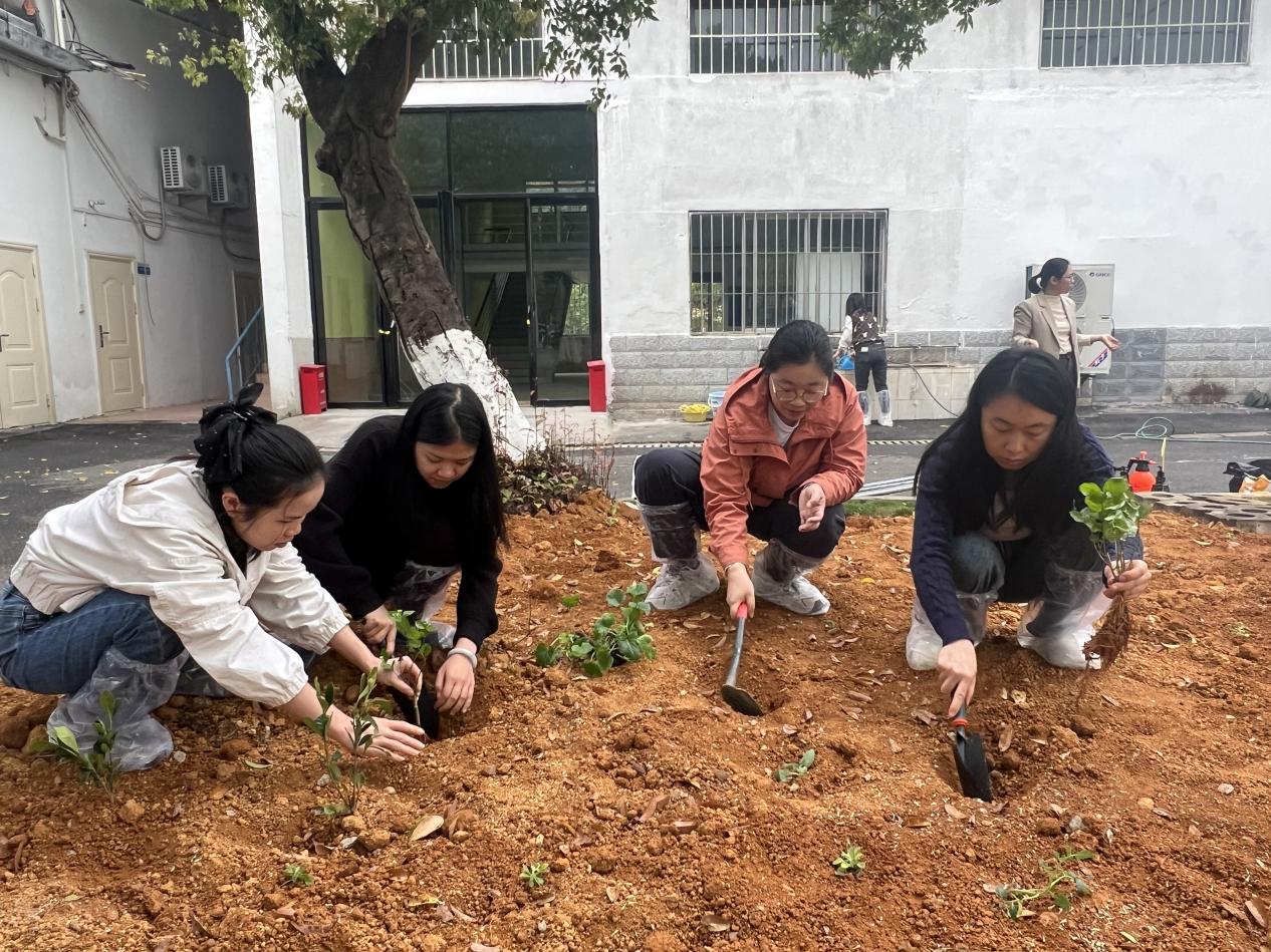 3月27日下午,我校学工部(处)、校团委党支部开展“党旗红引领生态绿”主题党日活动,支部全体党员以实际行动践行绿色发展理念,在学校学生心理健康教育中心旁共同栽种下一片寓意希望与成长的“心理疗愈花园”。