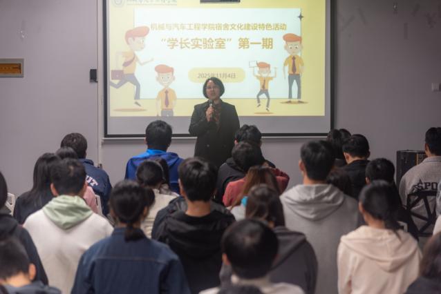 11月4日,机械与汽车工程学院在一站式学生社区举办了宿舍文化建设特色活动之“学长实验室”(第一期)。学院专职辅导员唐艳红老师出席,学院100余名学生参加活动,活动由张珂宁同学主持。