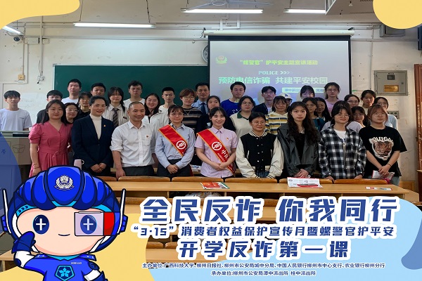 为深入持续开展校园防范电信网络诈骗工作,切实提升在校大学生的识骗防骗能力,有效降低发案率,确保学生财产利益不受侵害,3月21日下午,我校联合柳州市公安局城中分局、农业银行柳州分行、柳州日报社在文昌校区图书馆报告厅举办防范电信网络诈骗宣传活动。学工处、保卫处有关领导、辅导员代表以及学生干部等200余人参加活动。