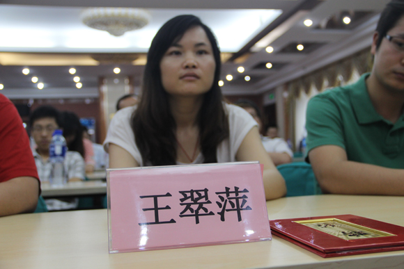校党委副书记、纪委书记、校友总会常务副会长黎平向会长陈安燕授予牌匾
