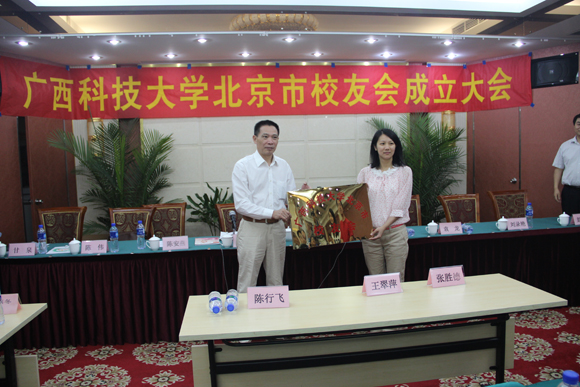 大会在宏伟嘹亮的国歌声中拉开序幕。校友总会秘书长、校友会办公室主任王先强向校友们简单介绍了广西科技大学(筹)北京市校友会筹备小组成立以来开展工作 情况以及校友总会网站的管理、《校友通讯》的出版情况。与会校友在王先强秘书长的主持下表决通过了广西科技大学(筹)北京市校友会第一届常务理事推荐名 单。校党委副书记、纪委书记、校友总会常务副会长黎平为北京市校友会授予“广西科技大学(筹)北京市校友会”牌匾,并为北京市校友会第一届常务理事成员颁 发了聘书。