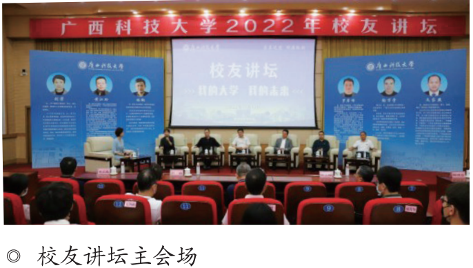 本次活动是学校2022年校友秩年返校活动之一,旨在整合校友资源,打造校友文化和服务品牌活动,这既是做好新生入学教育的一项重要举措,也是彰显校友尊师爱校情怀的交流平台。通过分享优秀校友辛勤耕耘、施展才华、创造业绩的成长故事和心系母校的赤子情怀,激励广大学子以优秀校友为榜样,大力弘扬“敢为人先、百折不挠、务实创新、追求卓越”的广西科大精神,厉奋发,成长成才,为建设国内先进特色鲜明高水平应用型大学,实现中华民族伟大复兴的中国梦作出更大的贡献。