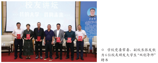 主讲嘉宾还分别回答了师生们线上线下关注的情感、创业、职业规划等问题。最后,张发钦为6位校友颁发了大学生“双创导师”聘书。