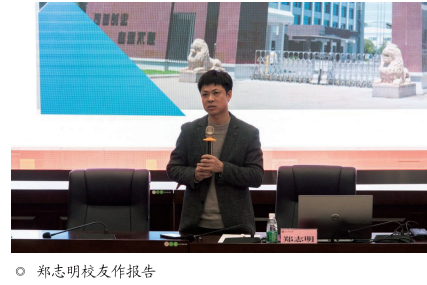 郑志明以传承工匠精神为主线,分享了自己职 高毕业后从一名钳工逐步成长为国家级技能大师工 作室带头人、全国技术能手、国务院政府特殊津贴专家、特级技师,直至当选党的二十大代表的成长经历与心路历程。从党的二十大的亲历者和见证者的视角,与大家分享了他的所见所闻、所思所悟、所获所感。特别是现场聆听了习近平总书记所作的党的二十大报告以及在广西代表团讨论时向习近平总书记作了汇报后,更加深刻理解了加快实施创新驱动发展战略,加快实现高水平科技自立自强,增强自主创新能力的重要意义,感受到习近平总书记对科技创新的关心和对产业工人的重视。他勉励学弟学妹要树立自己的目标,虚心学习,不惧困难和挑战,坚持不懈,持之以恒,成就精彩人生。