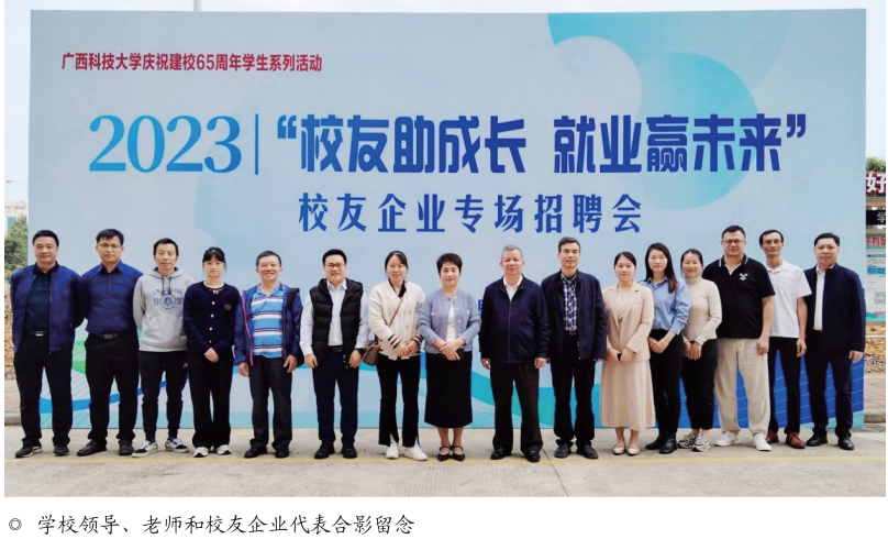 此次招聘会恰逢学校65周年校庆之际,学校高度重视。学校党委副书记覃萍,学校党委常委、副校长张发钦到招聘会现场走访慰问前来招聘的校友,仔细询问企业发展和用人情况,仔细了解行业发展动态,认真浏览毕业生投递的简历,与校友亲切交谈。