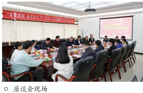 在学校建校65周年之际,12月3日下午,“爱校荣校 奋进科大人”校友与受奖助学生代表座谈会在文昌校区办公楼4一1会议室举行。学校党委常委、副校长张发钦出席会议。服装工程专业1993级罗岸峰校友、企业管理专业1995级陶万学校友、自动化专业2004级杨兵校友,学工部 (处)、校友办等部门负责人以及11名受奖助学生代表参加座谈会。