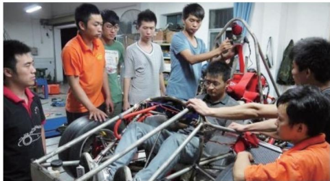 我是交通运输Y2011级阮武启,2013年我拿到了专升本的录取通知书,9月份来到了陌生又向往的大学,从此开启了我特殊的两年大学生活,那就是坚守在赛车工作室里,无限地开发自己的潜能,完成自己的赛车梦。